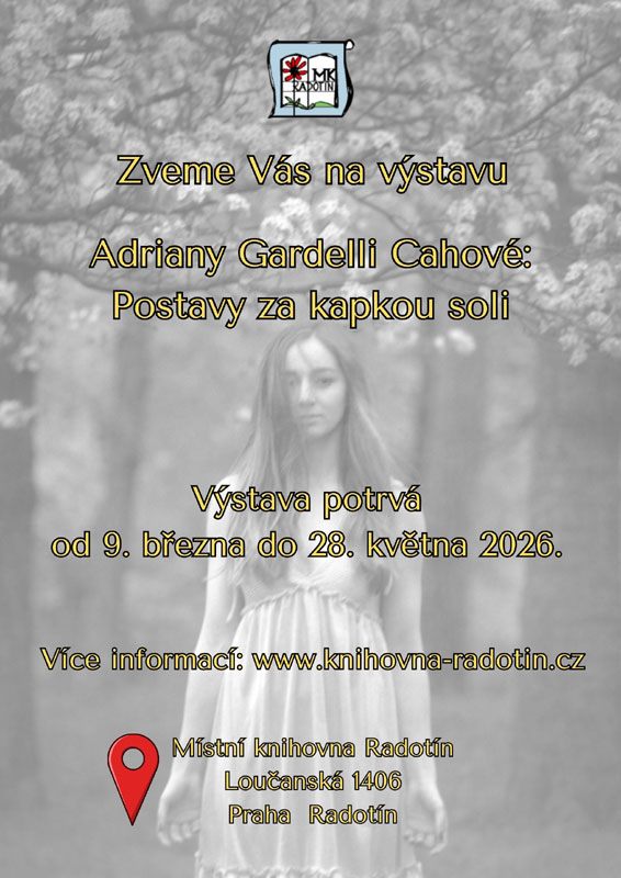 U nás si nemusíte jen půjčovat knihy, přijďte si pro turistické razítko Radotína, turistickou vizitku (12 Kč), pohlednice Radotína (12 Kč), připínací odznak (25 Kč), magnetku (30 Kč) a nově i závěsný kalendář na rok 2026 (250 Kč)!
